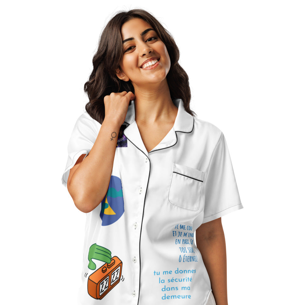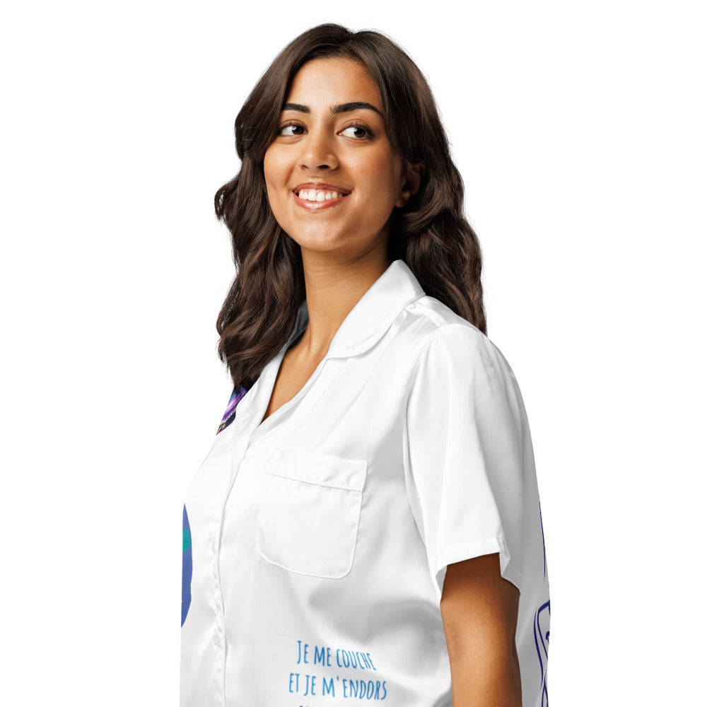 這款絲滑柔軟的睡衣上衣非常適合用作睡衣或高級家居服。其高品質的緞面布料讓您倍感舒適優雅。