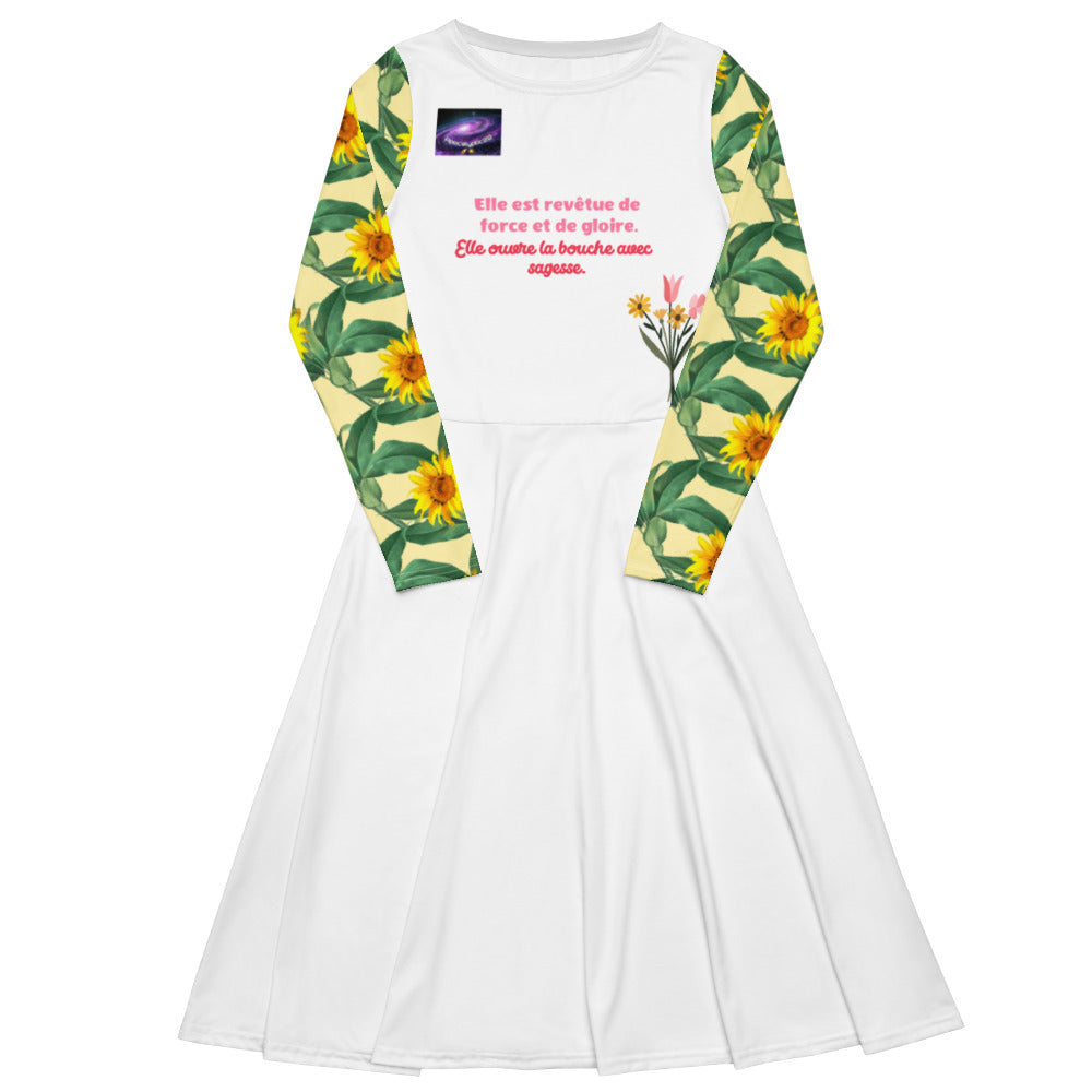 長袖連衣裙,遍布著力量和榮耀。她明智地張開嘴